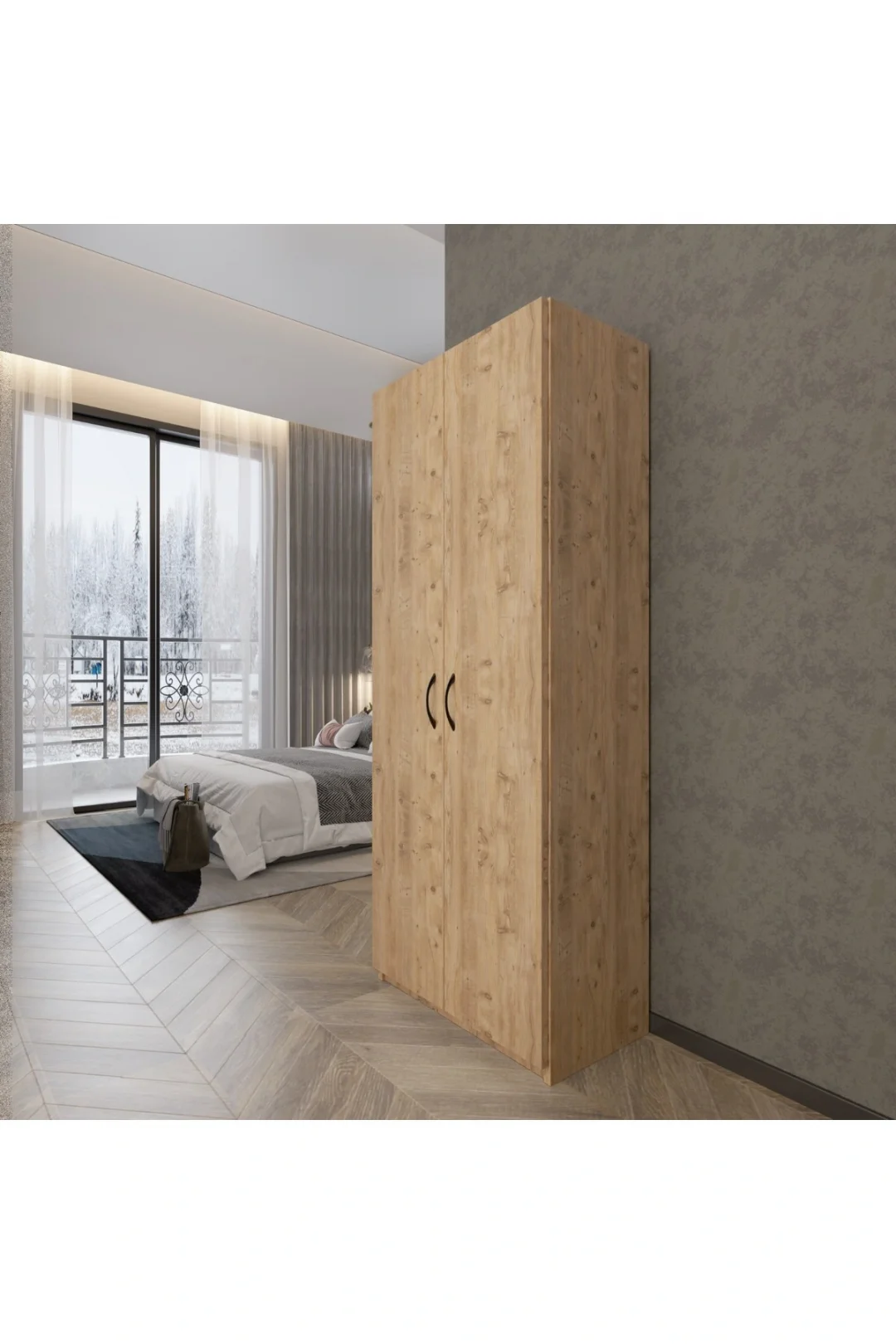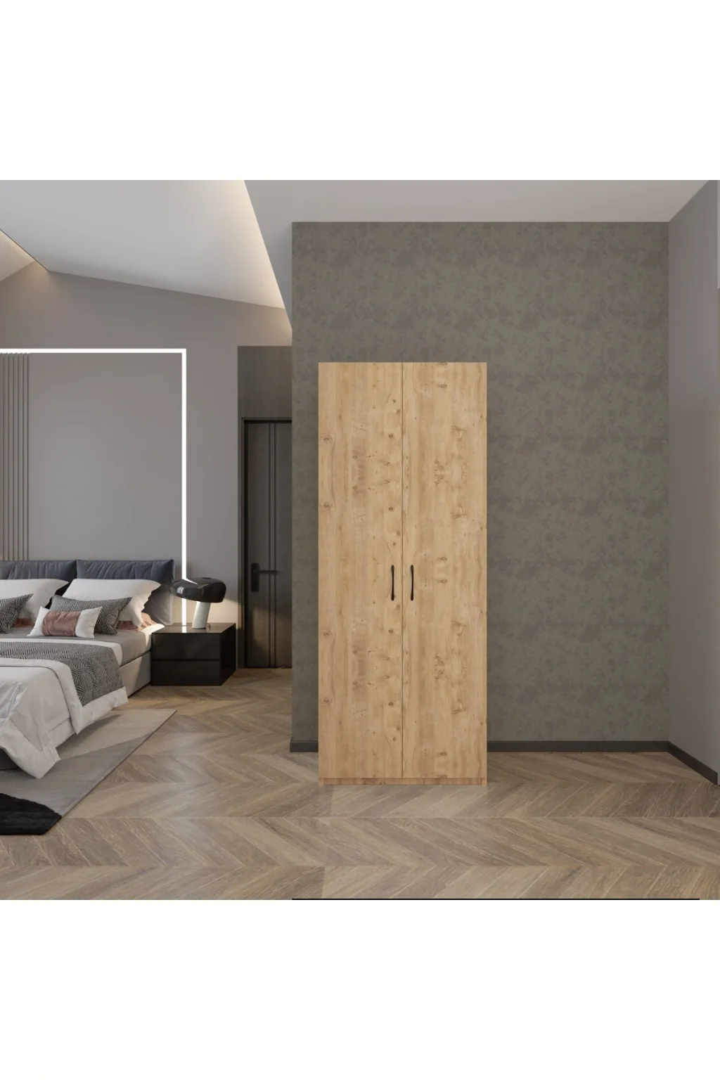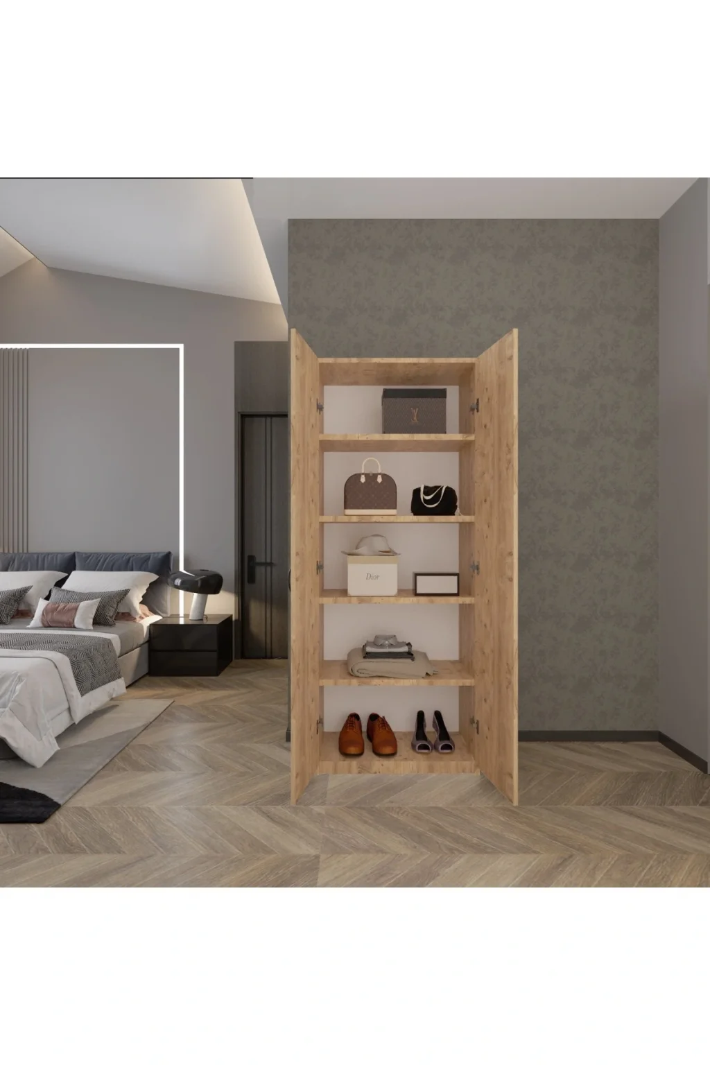 ED PET DİZAYN 2 Kapaklı 5 Katlı Çok Amaçlı Dolap Atlantik Çam / Elbise Dolabı / Saklama Dolabı