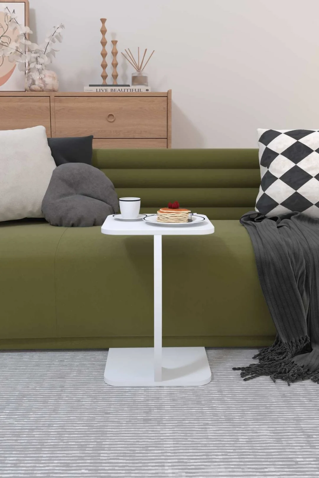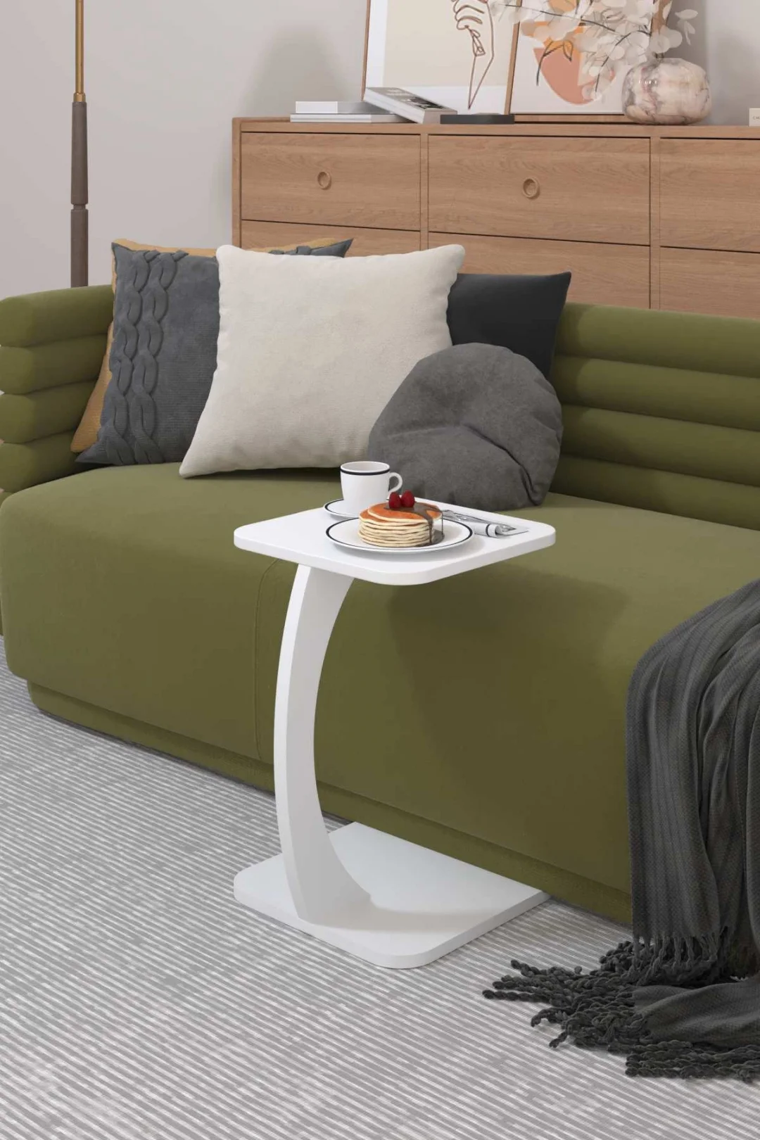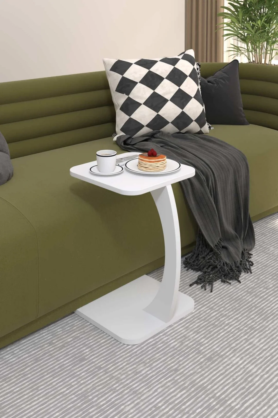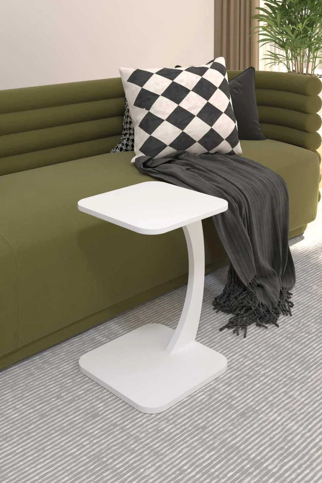 C Sehpa Koltuk Sehpası Yan Sehpa Zigon Sehpa Servis Sehpası Dikdörtgen Beyaz