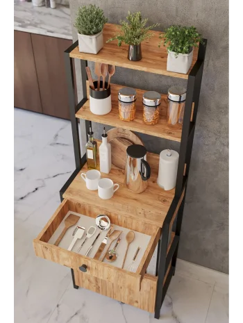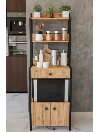 Çekmeceli 2 Kapaklı Çok Amaçlı Dolap Mutfak Bangosu Mikrodalga Fırın Mini Fırın Dolabı Atlantik Çam