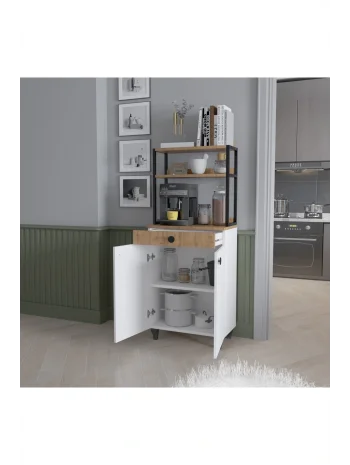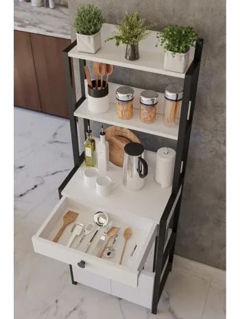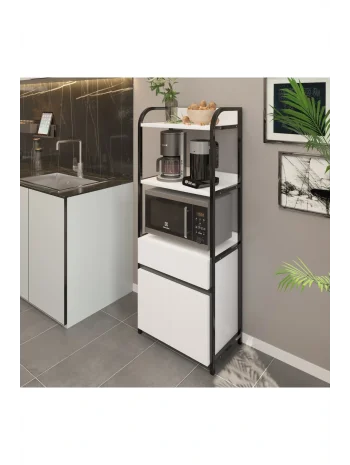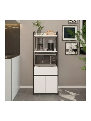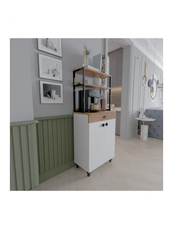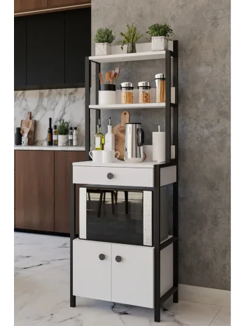 Çekmeceli 2 Kapaklı Çok Amaçlı Dolap Mutfak Bangosu Mikrodalga Fırın Mini Fırın Dolabı Beyaz