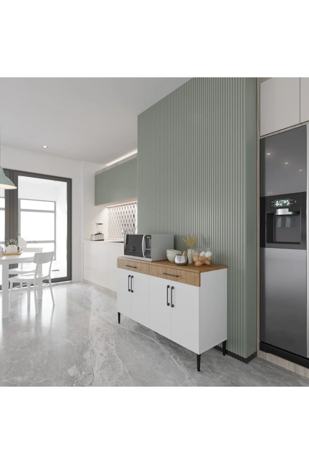 Modern ve fonksiyonel çizgileriyle dikkat çeken ED PET DİZAYN Artemis Çok Amaçlı Dolap, mutfak köşelerinizi hem düzenli hem de estetik hale getirir.