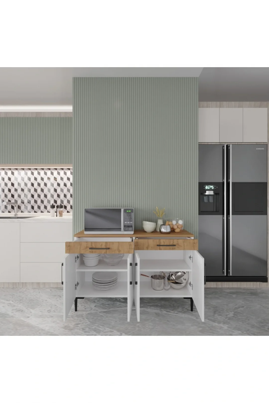 Çok Amaçlı Kullanım: Konsol, mutfak alt modülü, dresuar ya da genel depolama ünitesi olarak kullanıma uygundur.