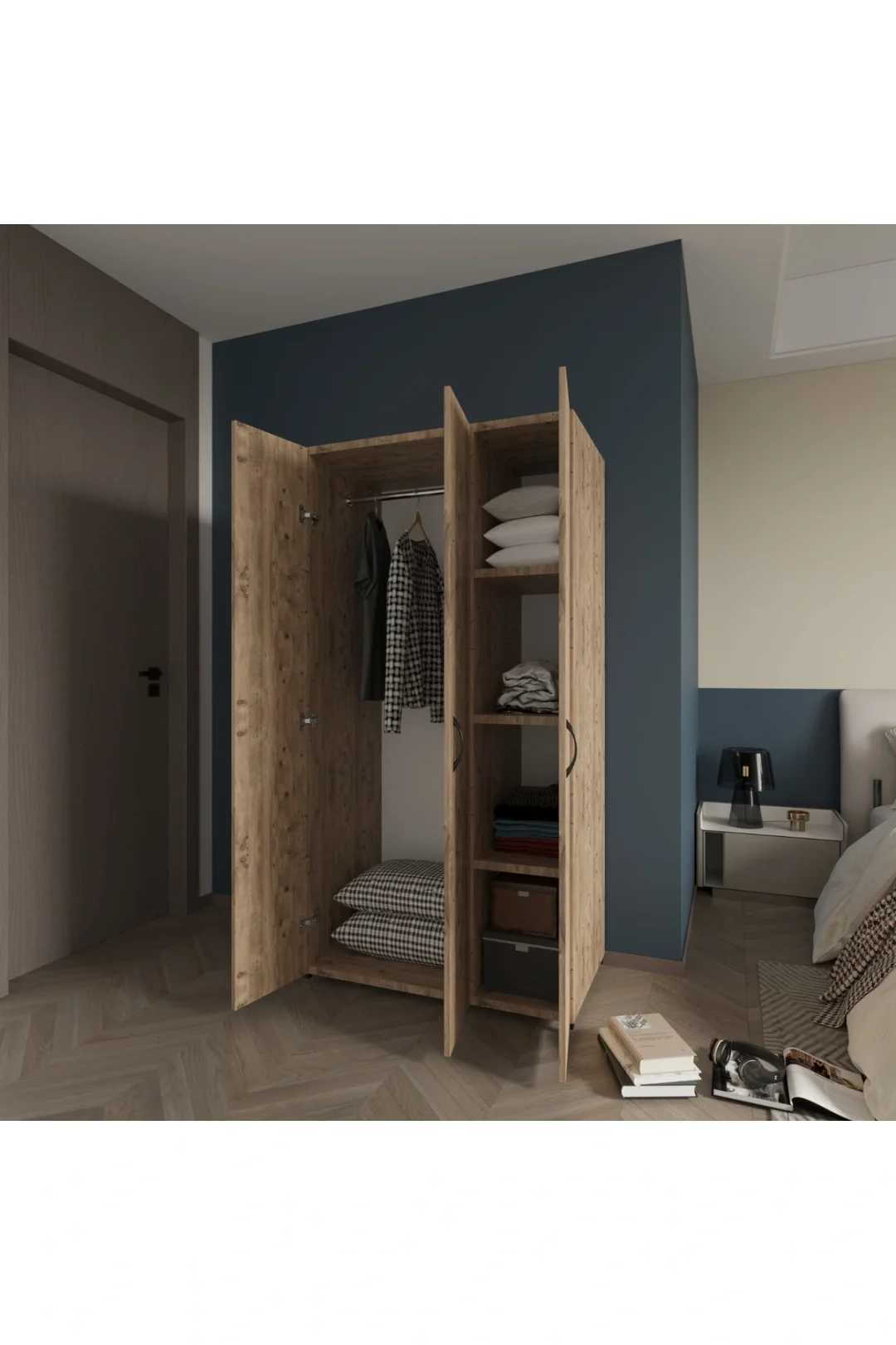 DORUK 3 Kapaklı Çam Elbise Dolabı / Toparlayıcı / Çok Amaçlı Dolap