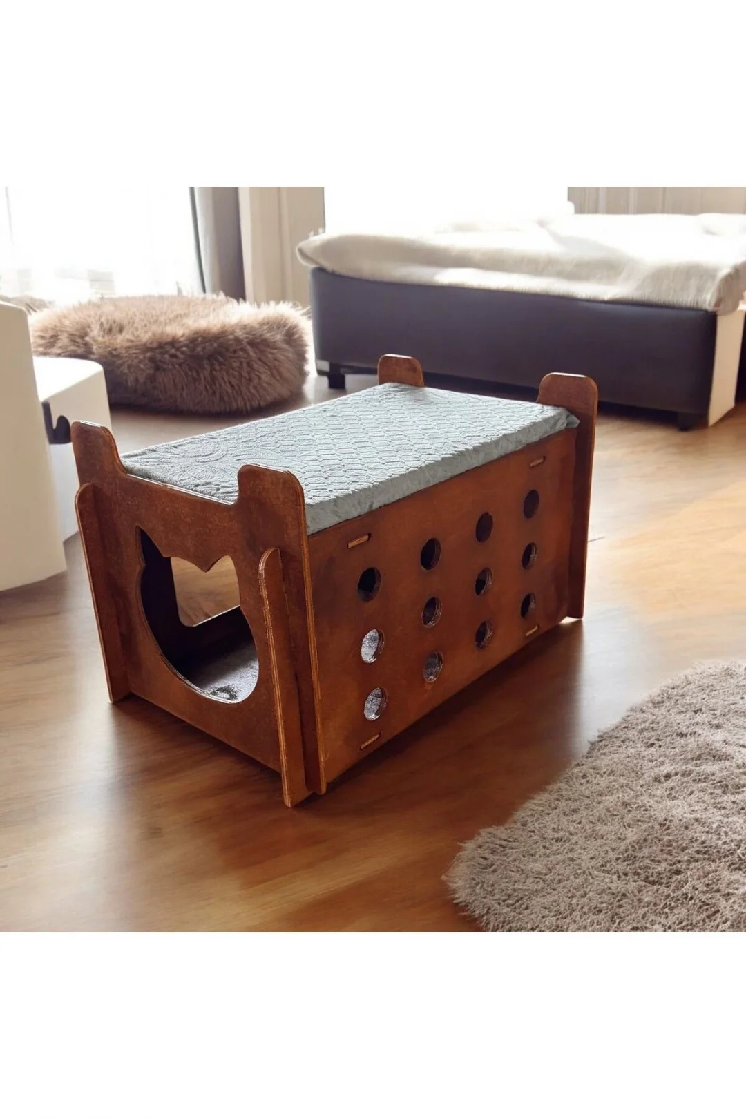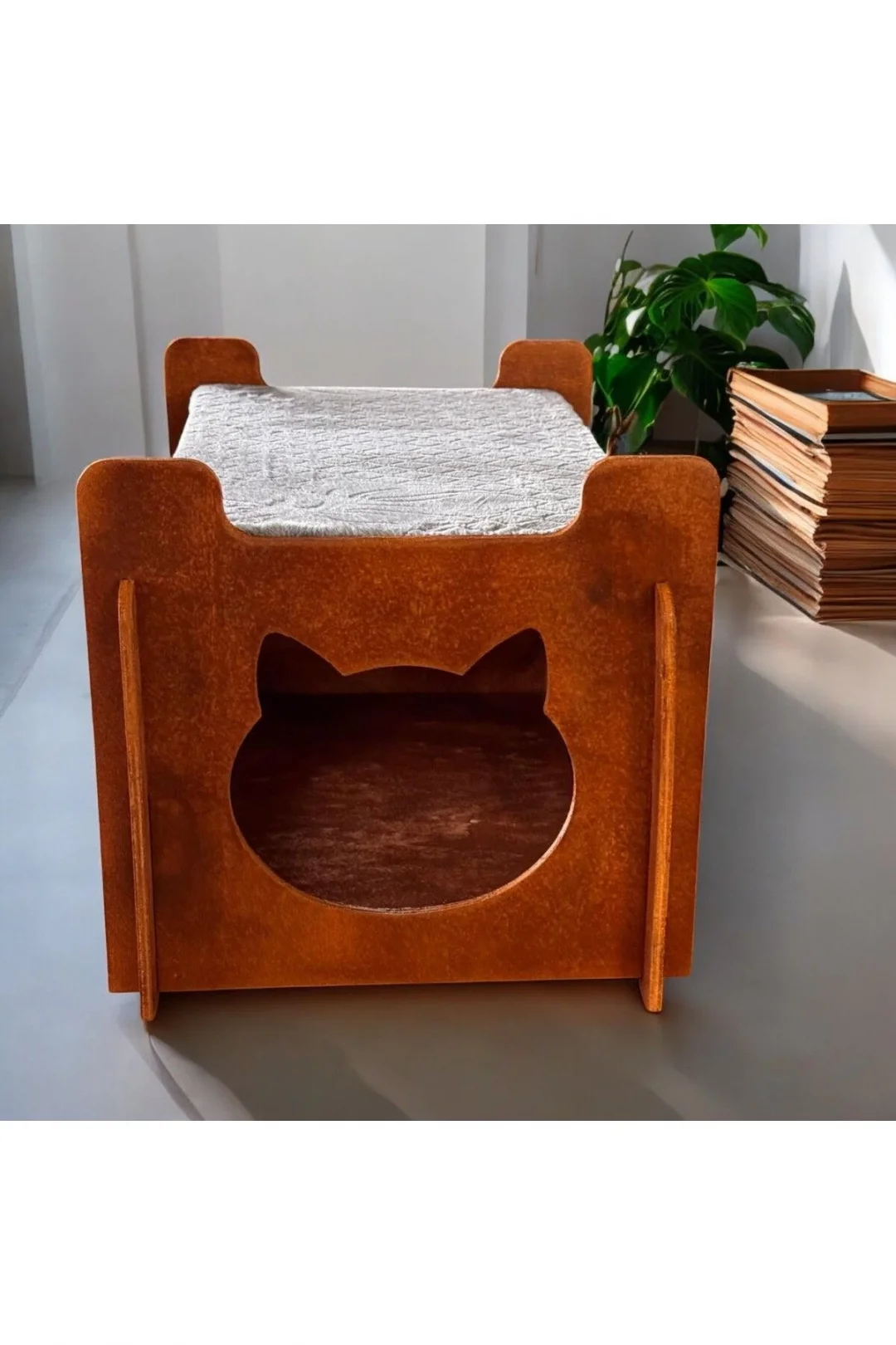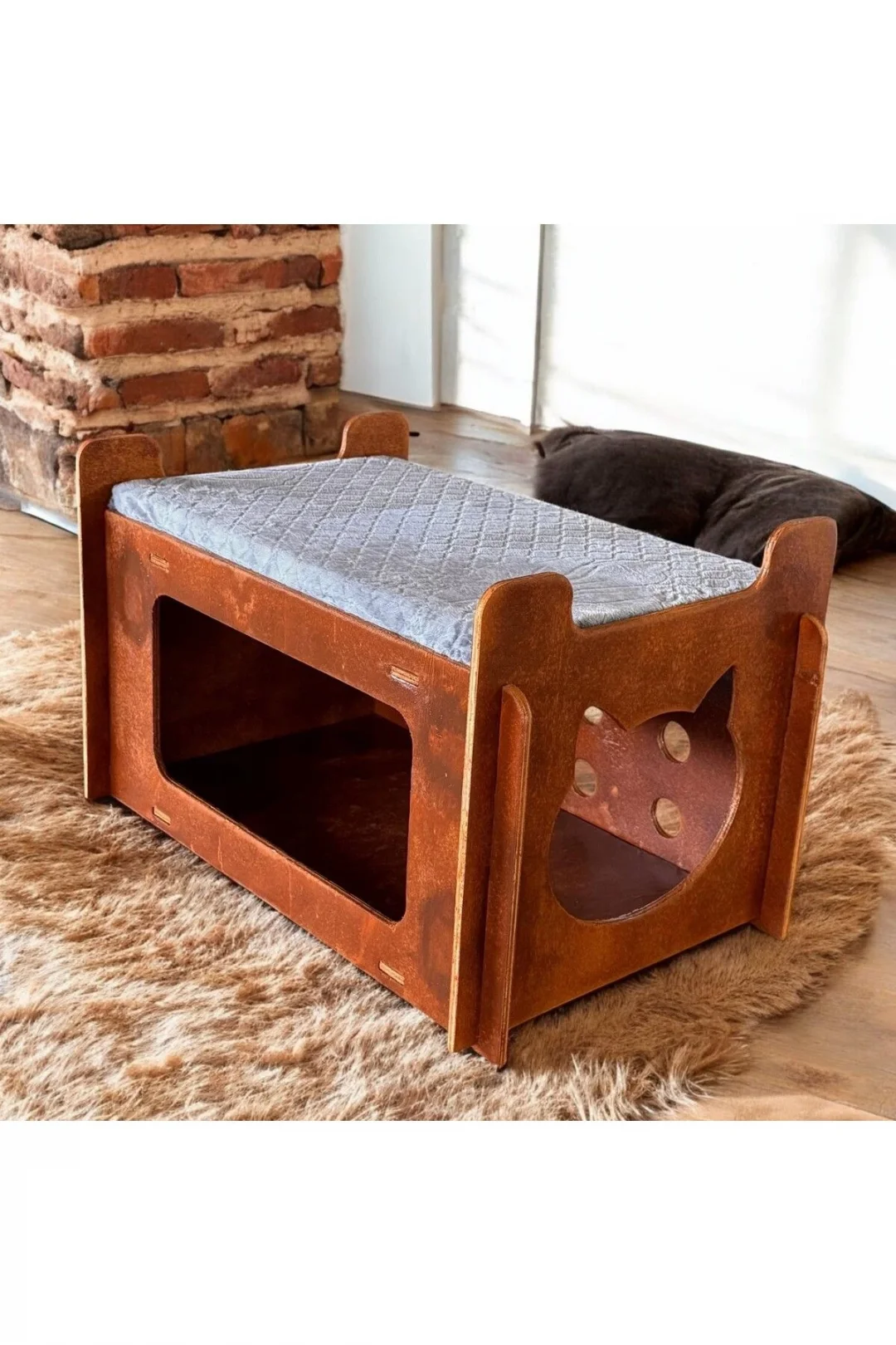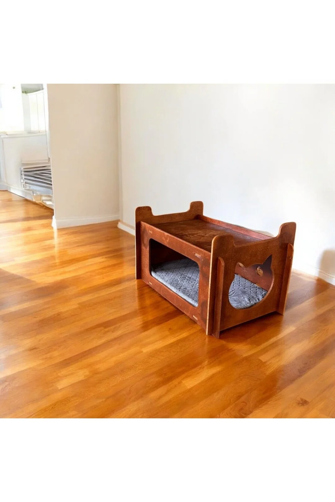 Ed Asia Kedi Evi 2 Katlı Ceviz Renk . Rahat Ve Yıkanabilir Minderi İle Beraber