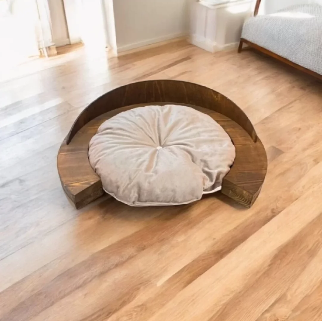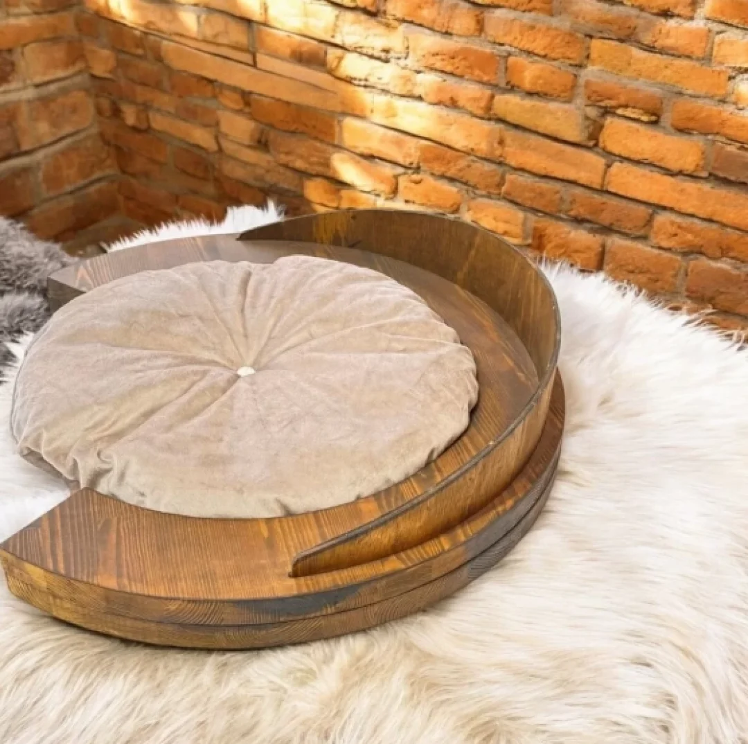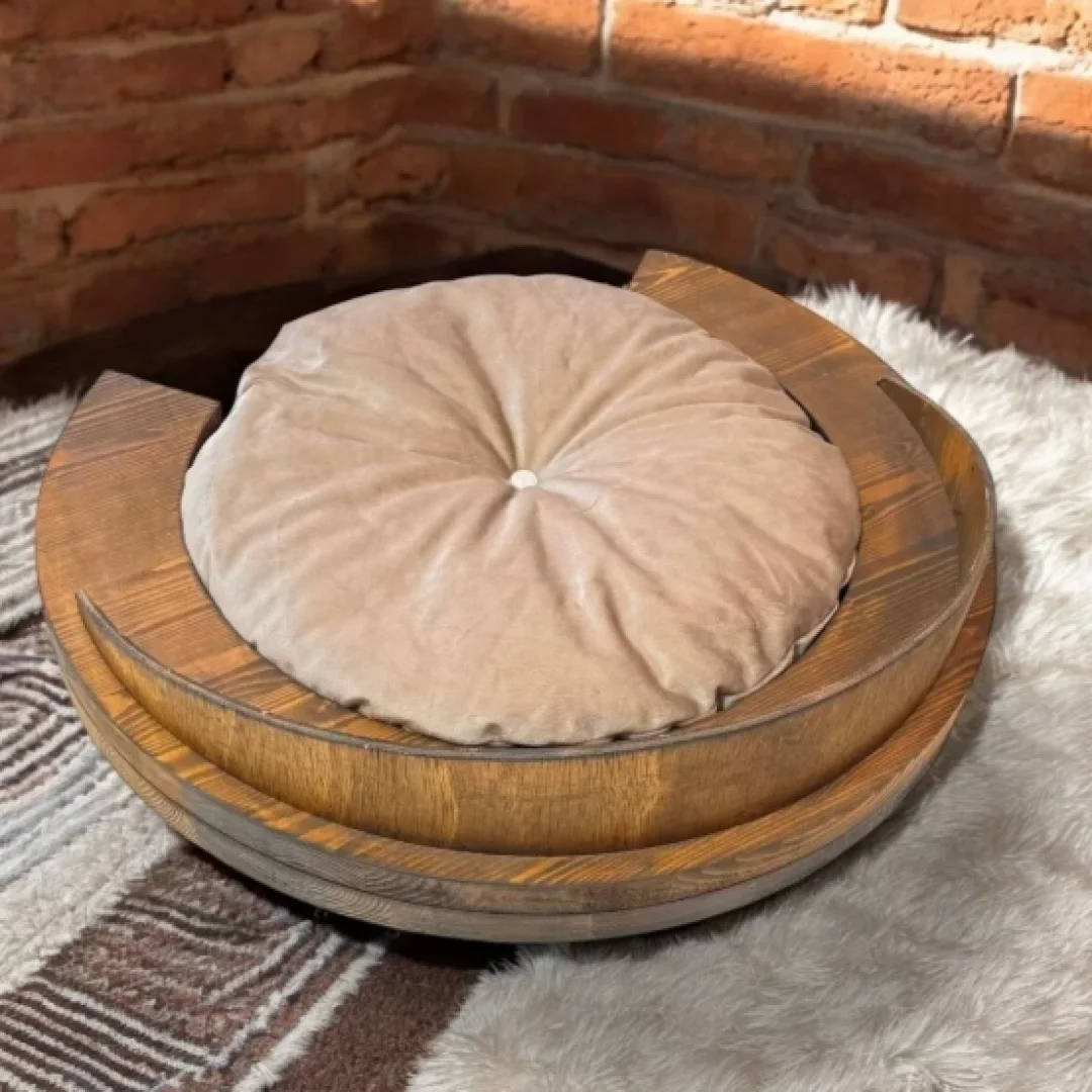 Kedi yatağı, masif ahşap detayları ile evinizin dekorasyonuna uyum sağlarken, kedinizin vücut şeklini destekleyerek daha konforlu bir uyku deneyimi yaşamasına yardımcı olur. Özellikle kış aylarında sıcak tutan yapısı sayesinde kedinizin üşümesini önler.