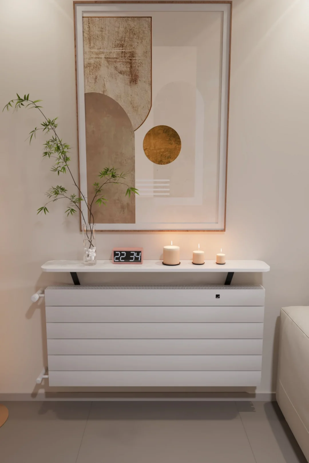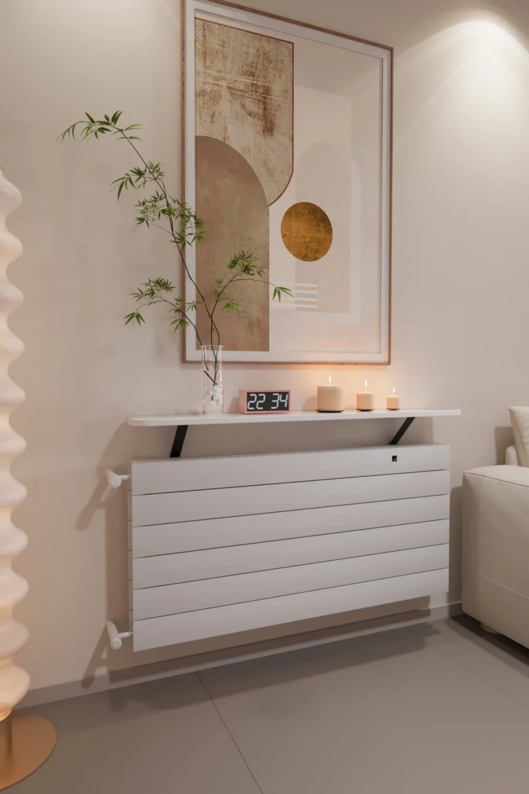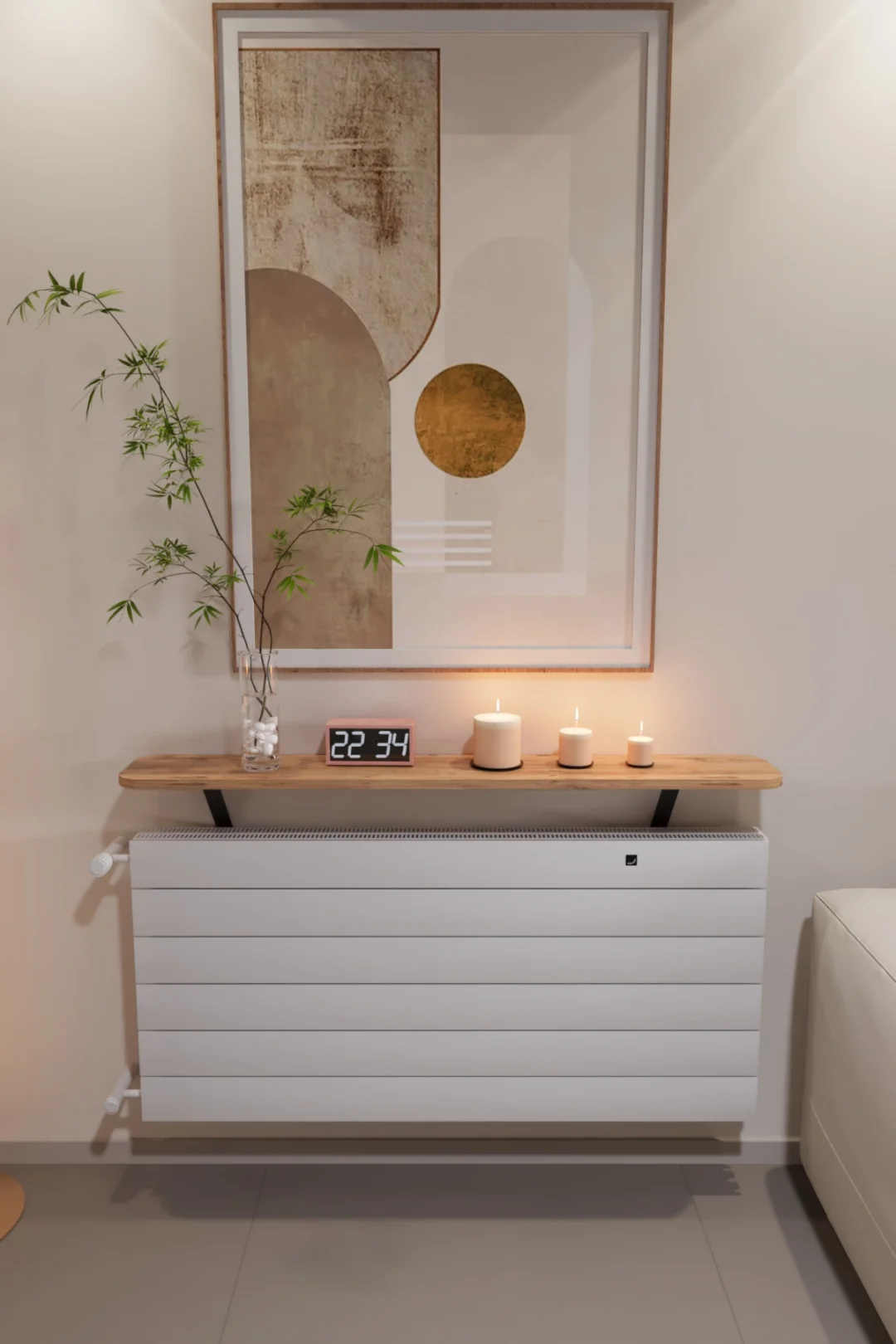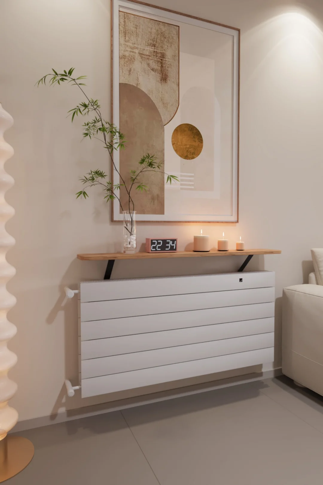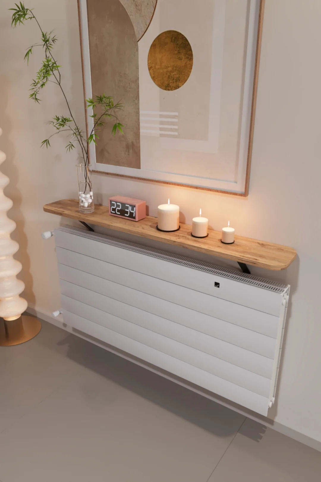 Evinize hem daha düzenli bir görünüm hem de şık bir dekor dokunuşu katın! 120 cm çam görünümlü üst rafı ve modern çizgileriyle bu kalorifer peteği kapak, peteği estetik şekilde gizlerken üst kısmını da kullanışlı bir alana dönüştürür. Salon, antre, koridor ve ofis gibi alanlarda dekoratif kullanım için idealdir.